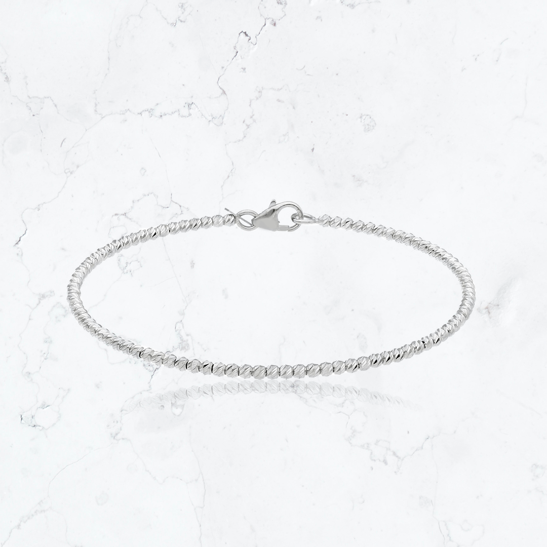 Esclava de oro blanco 18K con mostacillas diamantadas.